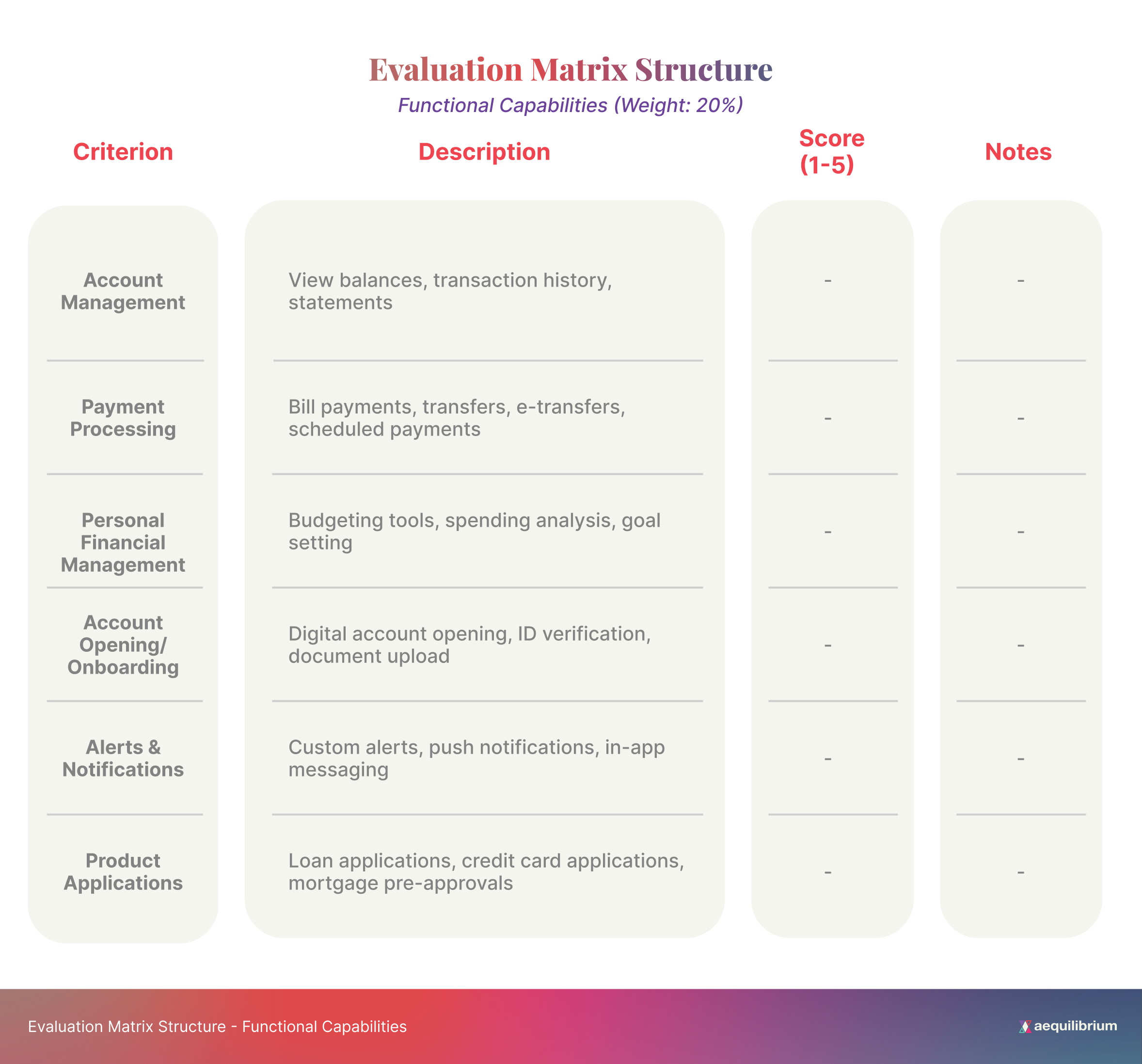 Sample Evaluation Matrix for Structured Testing Digital Banking Platforms