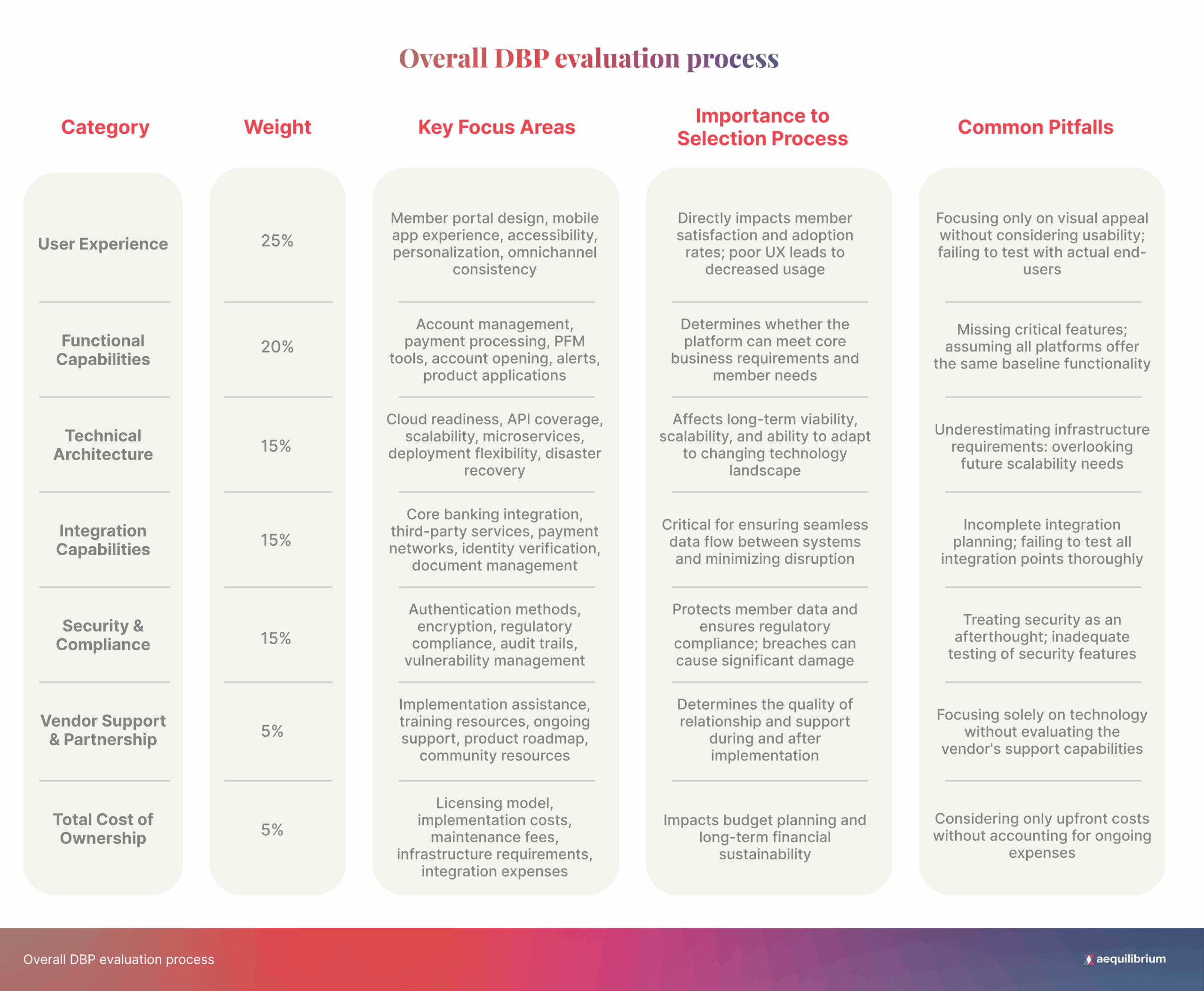 This matrix will help credit unions systematically assess potential DBP solutions before making a final selection.