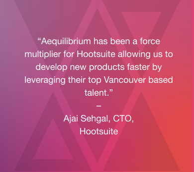 “Aequilibrium has been a force multiplier for Hootsuite allowing us to develop new products faster by leveraging their top Vancouver based talent.”